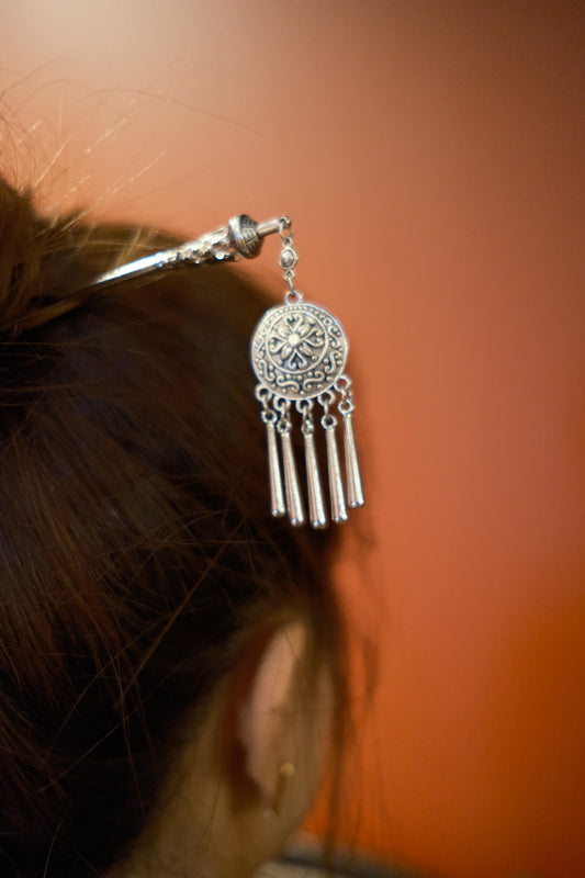 - Positioning: If you’re aiming for a more traditional look, position the hairpin at the side or back of the head, with the decorative end facing outward. The larger, decorative side can be placed above or below the bun for aesthetic balance.