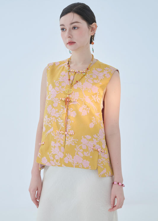 Chinese Brocade Vest - Golden Blossom Traditional Style
