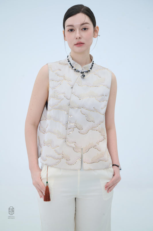 Chinese Brocade Mandarin Vest - Cloud Traditional Style