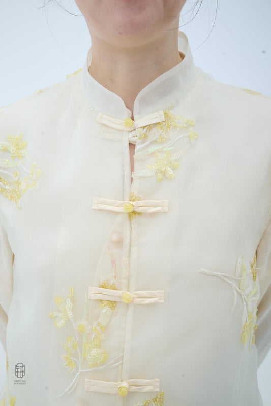 Chinese Sheer Vest - Golden Petals Contemporary Style
