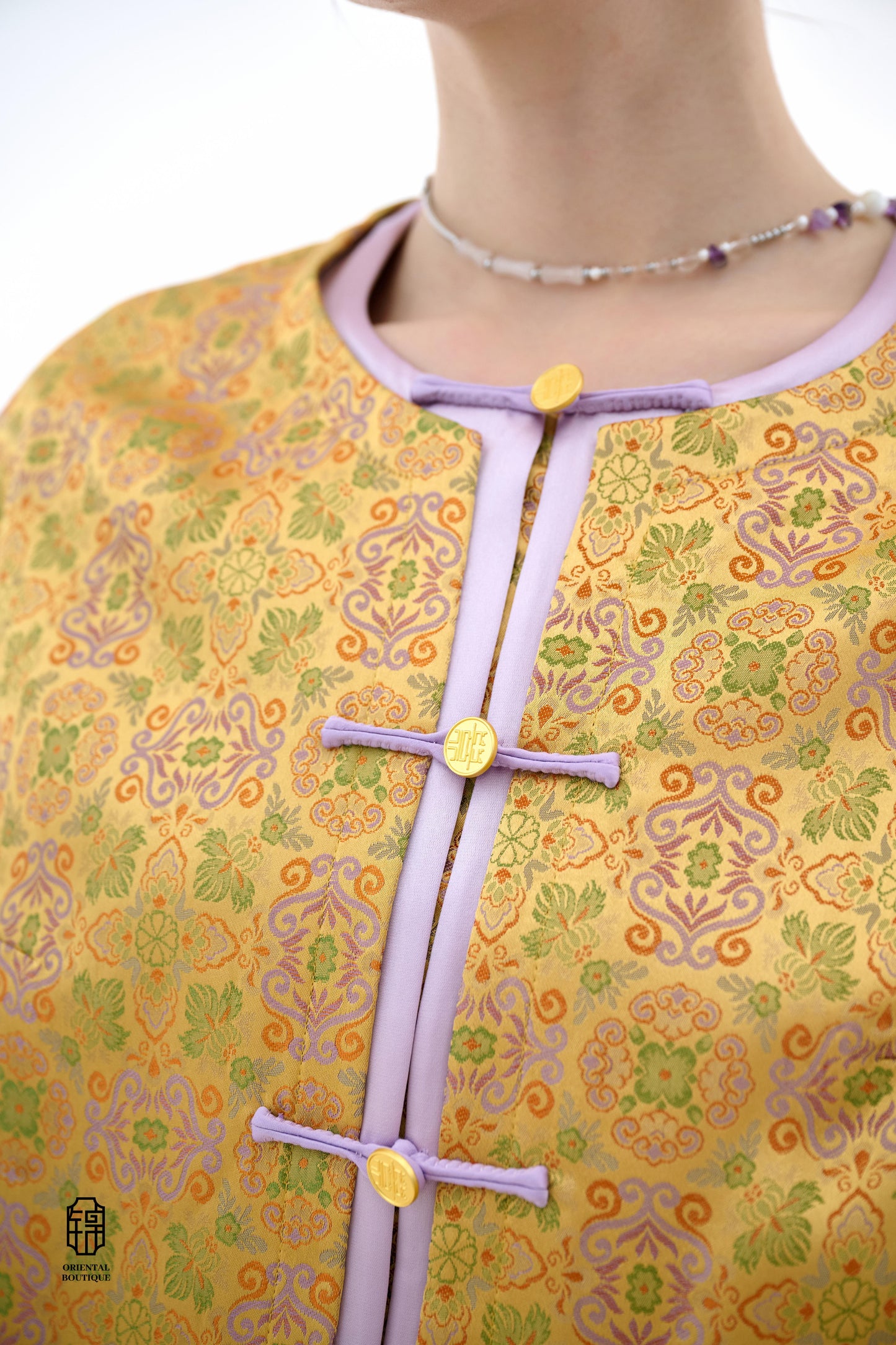 Chinese Brocade Jacket - Golden Lilac Traditional Style