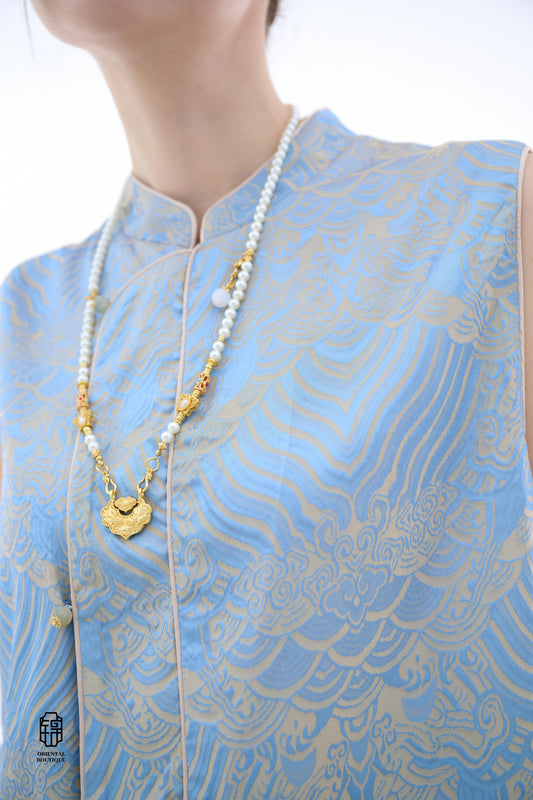 Chinese Vest - Blue Ocean Cloud Traditional Style