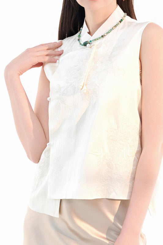 Chinese Mandarin Vest - Magnolia Embroidered Traditional Style